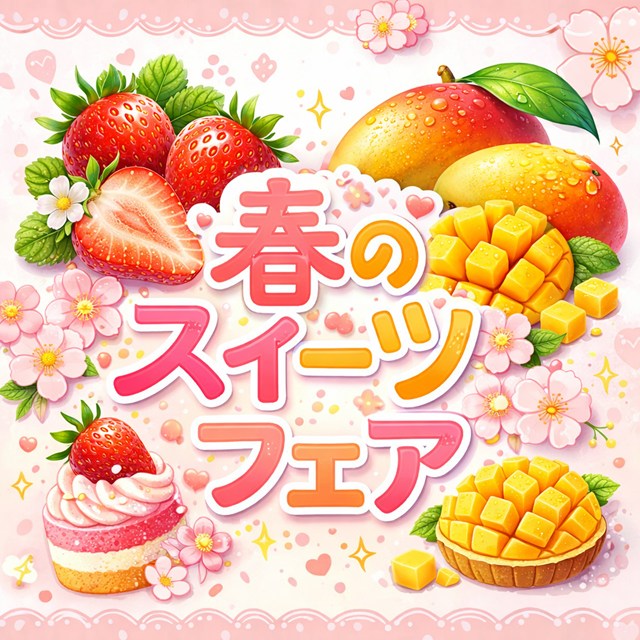 ふんわり桜が香る季節にぴったりの、期間限定スペシャルスイーツです。いちごたっぷりのクレープや、マンゴーのパンナコッタなど、お子さまにも大人気のメニューをご用意しています。彩り豊かなラインナップで、心ときめくひとときをお届けします!