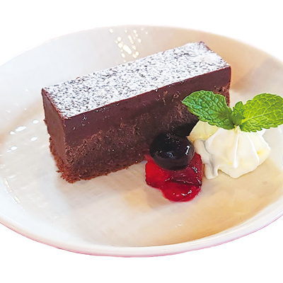 しっとり濃厚なチョコレートケーキ。口に入れた瞬間、カカオの香りが広がり、とろけるような口どけが楽しめます。温かいコーヒーや紅茶との相性も抜群です。