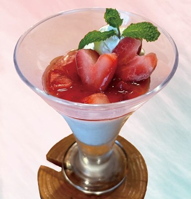 つるんとした食感の杏仁豆腐に、甘酸っぱいいちごをたっぷりトッピング。見た目も華やかで、さっぱりとした味わいが特徴です。食後のデザートにもおすすめです。